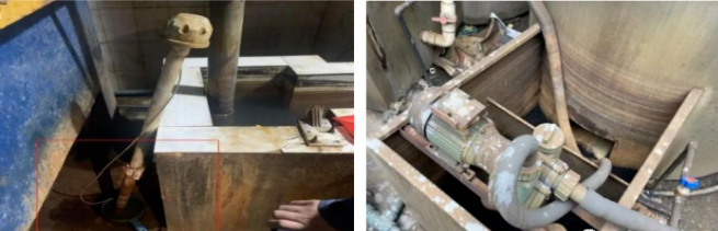 現(xiàn)場檢查發(fā)現(xiàn),該處理廠廢水排放口pH自動分析儀被人為拔出放在邊上裝滿清水的塑料瓢內(nèi),廢水處理設(shè)施末端沉淀池內(nèi)有一根自來水管對廢水進行稀釋,加藥桶未在加藥。經(jīng)環(huán)境監(jiān)測人員現(xiàn)場監(jiān)測,沉淀池、排放口處pH值均超標,而塑料瓢內(nèi)清水的pH值為達標,該行為涉嫌自動監(jiān)控數(shù)據(jù)弄虛作假。同時發(fā)現(xiàn),廢氣處理設(shè)施第一級噴淋塔配套的水箱已干,未在噴淋,第二級噴淋塔正常運行,該行為涉嫌不正常運行大氣污染防治設(shè)施。